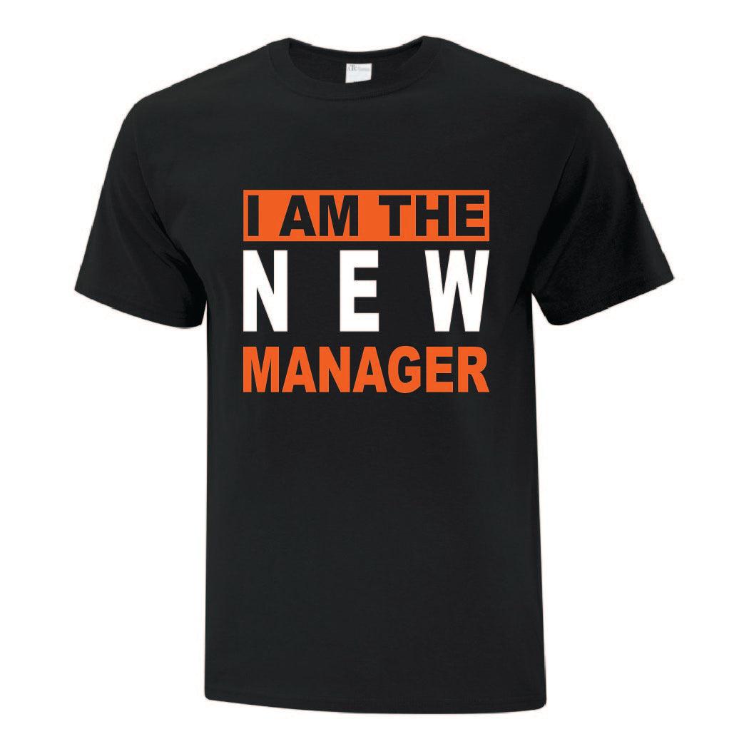 I am the new manager T-shirt now available in a variety of colours, styles, and sizes.